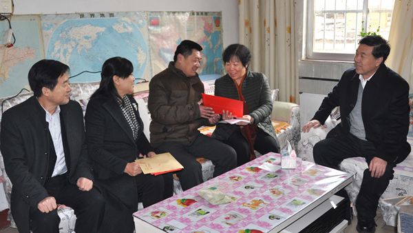 1月16日,省总工会副主席魏丽、冶金公司经理助理刘松林、工会主席刘纯玉,副主席李东强等领导,在市总副主席刘蓬、产业工会主任于明、耐材公司党委副书记、纪委书记、工会主席邓亦庭等领导的陪同下看望耐材困难职工,给他们送去新春的祝福和慰问金,领导们的亲切关怀让我们的困难职工在寒冷的冬日里感受到了党和政府的关怀和温暖。