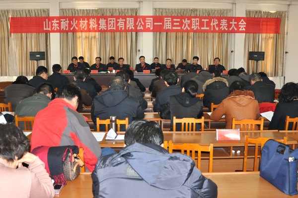 2013年1月28日,山东耐火材料集团有限公司召开了一届三次职工代表大会。会议传达了山钢集团2013年度工作会议精神,出席会议的代表,认真听取并审议了总经理李文亮所作的《坚持内涵式发展,推进生产经营科学、高效运行,努力完成增盈减亏目标任务》的工作报告,听取并审议了《2012年财务决算、2013年财务预算说明》及《集团公司薪金制实施办法(试行)的修改说明》,审议了《劳动合同管理实施办法》和《员工奖惩办法》,签订了《2013年经营目标责任书》、《2013年安全生产授权委托书、安全生产目标管理责任书》,与会代表对集团公司领导班子及成员进行了民主评议,表彰了2012年度先进集体和先进个人,董事长、党委书记刘伟作重要讲话。