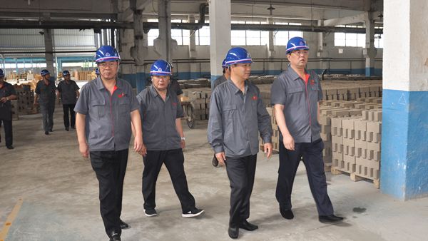 侯军董事长一行首先到王耐分公司生产现场进行视察,详细了解了耐火材料生产工艺流程、生产装备、市场环境、安全环保、技术研发等各个环节。