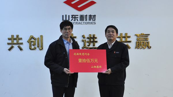 1月30日下午,山钢集团工会主席卢彤书、女工委主任金连华,代表山钢集团为山东耐材公司送来15万“送温暖”慰问金。