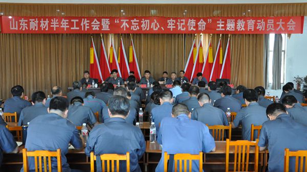 - 7月19日上午,山东耐材集团召开2019年度半年工作会暨“不忘初心、牢记使命”主题教育动员大会。会上,鲁耐、王铝、王耐、国贸、财务部五个单位汇报交流上半年生产经营运行情况和下半年工作安排;总经理李文亮作了题为《进中求优、变革突破确保契约化目标全面完成》的讲话,对公司上半年生产经营工作进行总结分析并对下半年工作进行了安排部署;党委书记、董事长车连房以《系统深入思考、推进管理提升努力推动山东耐材平稳高质量发展》为题作重要讲话。党委副书记、工会主席邓亦庭主持会议并传达山钢集团党委书记侯军在集团公司“不忘初心、牢记使命”主题教育工作会议上的讲话精神和山钢集团主题教育工作方案,党委委员、纪委书记瞿守民宣读公司党委对先进集体、先进个人进行表彰的决定。