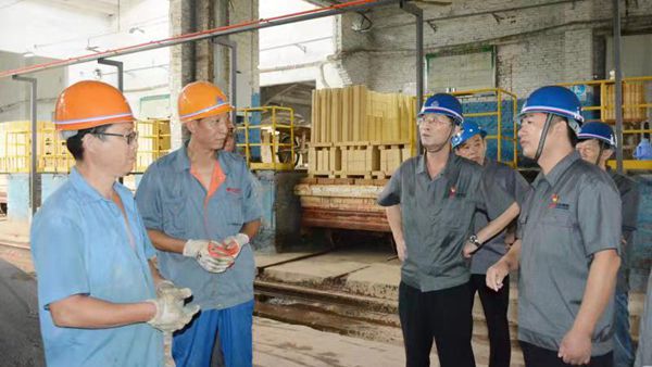 车连房在与窑炉操作人员和检修人员交谈时要求大家一定注意操作安全和施工安全,把安全防护用品佩戴好,到窑顶操作要系好安全带。当前王耐分公司正值生产压力大,工作头绪多的非常时期,大家必须提高执行力,为了企业向好发展,踏踏实实地把本职工作做好。车连房叮嘱大家在高温天气下注意防暑降温,在确保安全的前提下完成窑炉操作和检修工作。