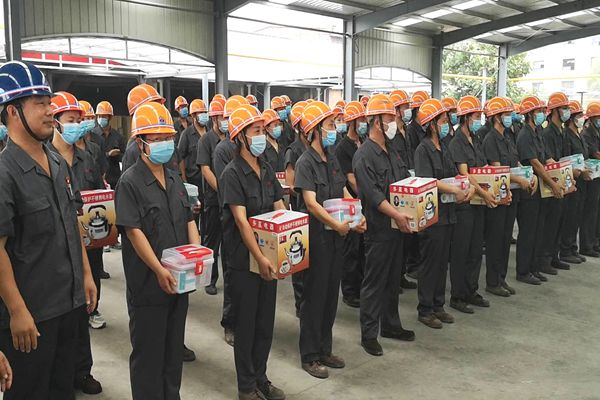 卢彤书主席代表山钢集团向奋战在一线的职工同志们表示亲切慰问,并为一线职工送上医药箱、电热壶、矿泉水等防暑降温物资。卢主席说,在炎热高温、艰苦工作环境中,广大职工仍坚守生产岗位,而且干劲十足。山东耐材今年上半年销售收入、利润大幅增长,一方面是靠技术升级提高生产效率,一方面是靠大家的劳动热情和工作的辛勤努力来提高产量和效益,没有大家的辛勤努力,就没有现在的效益。在此,受集团领导的委托,代表山钢集团向大家表示崇高的敬意和衷心的感谢。