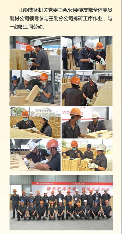 8月5日,山东钢铁集团党委委员、工会主席卢彤书、工会副主席刘松林带领工会、团委全体成员走进山东耐材集团王耐分公司开展“赴一线送清凉,与职工同劳动”主题党日活动,为一线职工送清凉,并参与王耐分公司拣砖工序作业,亲身体会一线职工高温作业的辛劳。