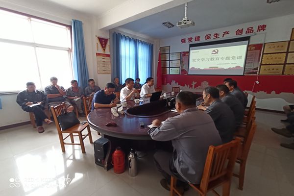 - 慰问结束后,陈向阳到联系点山东耐材王铝分公司原料党支部,以《学党史,增强干事担当无穷力量》为题,讲授了专题党课。