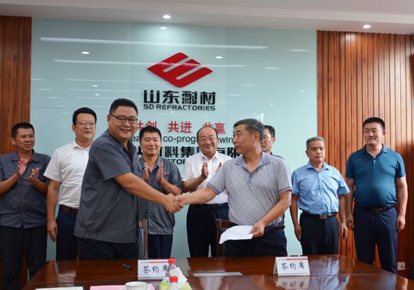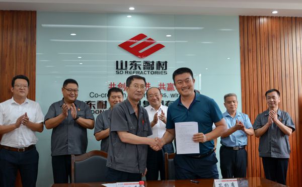 - 6月29日, 山东耐材与青岛科技大学校企合作暨社会实践基地共建签约/揭牌仪式在山东耐材总部二楼会议室举行。青岛科技大学党委副书记李勇,材料学院党委书记杜芳林,教务处副处长、高密校区教学办主任刘保成,团委副书记陈兵,淄博教科产融合基地副书记张壮出席签约仪式,公司党委书记、董事长车连房,党委副书记、总经理王佑宝,副总经理张延敏、汪继炉,部分部门负责人参加了签约仪式。