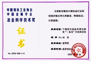 - 干熄焦引进技术消化吸收“一条龙”开发和应用证书 干熄焦装置用新型耐火材料的研制证书